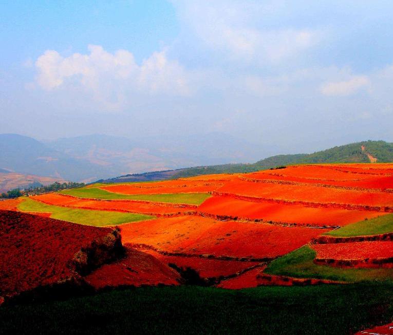 Get up early when the sun is rising over Dongchuan Red Land in the morning. View from distance, the hills and fields appear in all kinds of red colors. You will watch local peasants doing their farm work. After lunch, drive back to your hotel in Kunming.