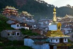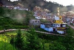 Leave Jiuzhaigou in the morning, we will pass Chuanzhusi town, then driving on the Ruo'ergai prairy grassland, en route, we can visit a local nomad family by entering their tents on the grassland with yak and sheep herds wandering nearby. Sometimes, the warm-hearted hosts will invite us to have a cup of butter tea to show their welcom. In the afternoon, we will go to visit the flower lake where we can see a lot of wild flowers are growing under the water in the lake. Actually, the flower lake is a large area of wet land. In the evening, we will arrive at Langmusi town located on the border between Sichuan and Gansu province. Overnight: Langmusi Hotel.