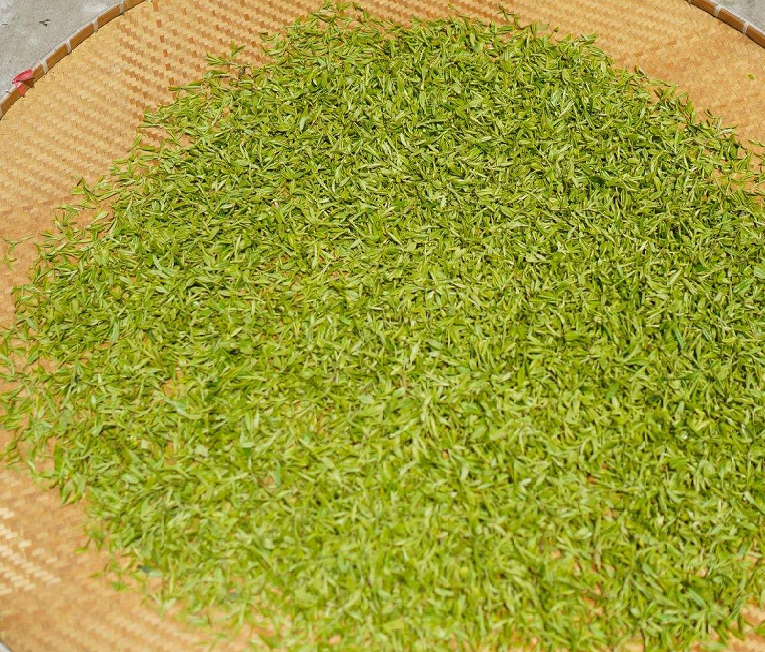 Tea leaves are pan-dried immediately after picking to prevent oxidation and bacterial growth. They then are rolled by hand to squeeze out excess moisture and to release flavor enzymes. The leaves are finally fired in large driers and packed.