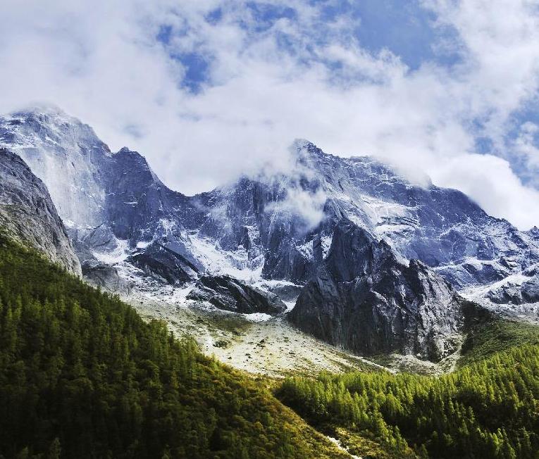 The Four Girls Mountain (SiGuNiangShan) is reputed as the Oriental Alps, and is famous for its grandness, straightness and forcefulness. There are abundant forest, thick green grass and clear flowing rivers. The mountain looks like South European scenery.The Fourth Girl(the fourth peak), 6250m high, is the highest amomg the four. The other 3 peaks (known as the First,the Second and the Third Girl) are respectively 5335, 5454, and 5664m. The Four Girls Mountain, which covers an area of 450 square kilometers, consists of the Moutain Siguniang, Shuangqiao( Double Bridge) Valley, Changping( Long Flats) Valley and Haizi Valley. Every valley has its own characteristics, it is definitely worth your visiting. The Mt. Siguniang Scenic Area is a mystical and beautiful land. Ancient, simple, pure and original, the special sights of its three valleys attract you here to enjoy the spirit of nature.