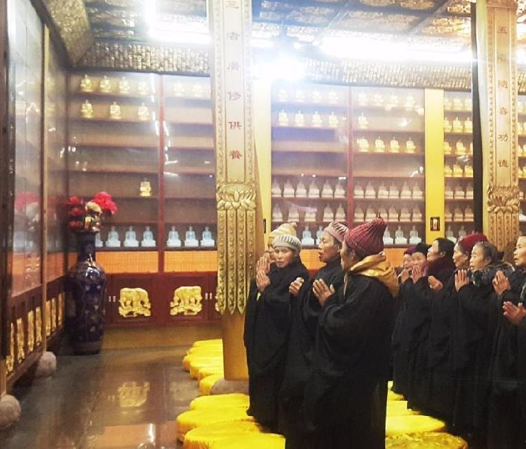 The morning class is the temple where monks gather in the morning (between 5:00 am and 7:00 am) to recite the Shurangama mantra, the Great Mercy Curse, the Ten Little Curses, and the Heart Sutra. At the beginning and the end of the recitation are all equipped with Brahma and praise verse. Among them, the Shurangama mantra is a lesson, the Great Mercy mantra, the Ten Little Curses, and so on. Some monasteries take turns in reading these two lessons. Only at Buddhist festivals do two lessons.It’s a great chance to have a look at them in the morning, we also could take picture or video without flash.