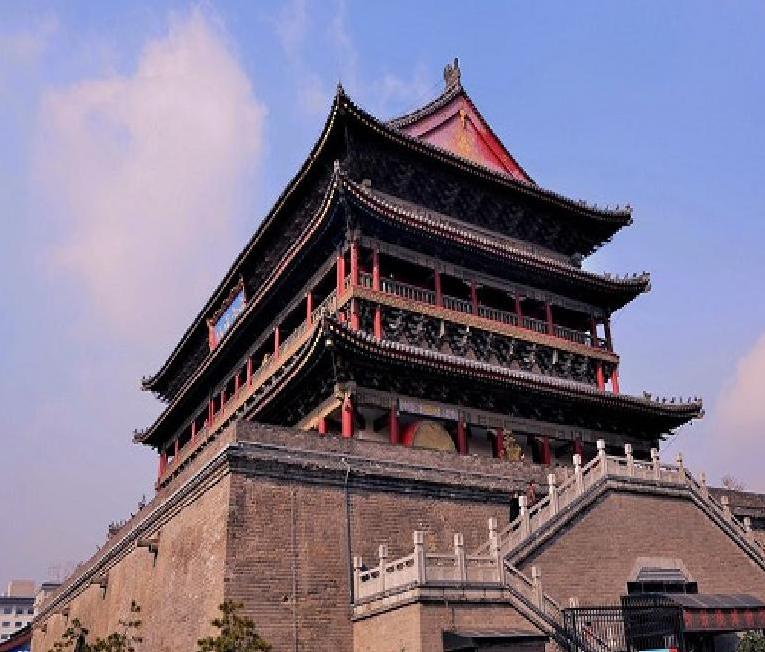 The Bell Tower,is a stately rtaditional building,that marks the geographical center of the ancient capital. From this important landmark extend East, South, West and North Gates of the city wall of the Ming Dynasty.About 500 meters northwest to the Bell Tower stands another manificent building,the Drum Tower.It is a new historical monument in Shaanxi Province.With the two towers rivaling each other,the ancient city of xi'an is even more beautiful and spectacular than ever before.
