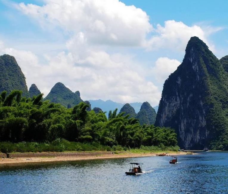 The Li River cruise Guilin to Yangshuo is the centerpiece of any trip to Guilin. Gorgeous Karst peaks give you surprises at each bend of the limpid river under the blue sky. Water buffalo patrol the fields, peasants reap rice paddies, school kids and fisherman float by on bamboo rafts. With its breathtaking scenery and taste of a life far removed from the concrete metropolis, the scenery along the river become one of China's top tourist destinations.