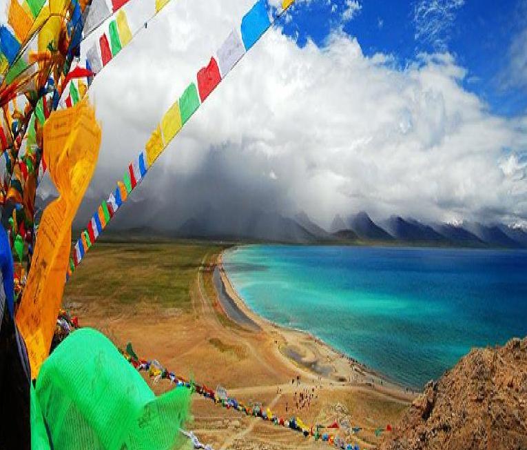 Drive from Lhasa to Lake Namtso. On the way, clients will see Nyenchen Thanglha (snow mountain ranges) and lots of nomads with yak and sheep grazing nearby. Namtso Lake is the 'Heavenly Lake' which is one of the four holy lakes of Tibet and also the highest salt-lake. You can do a very relaxing trek around lakeside and theTashi Island. Overnight you will stay at Namtso Guestroom.