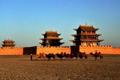 After breakfast, you will be transferred to the airport to catch your flight to Jiayuguan. Upon arrival, Visit the Jiayuguan pass. This Ming Dynasty fort guards the strategic Jiayuguan pass, at the western end of the Great Wall – this was the last section built by the Ming Dynasty. The Great Wall Museum opened to visitor in October 1989 and it is the first one to exhibit the Great Wall culture in a comprehensive and systematic way. Then head to visit the The Great Wall on the Cliff, The wall here was built on the ridge with the gradient of 45 degrees. It is high in the air and it looks as if it fell down from the top of the hill. So people refer to this section of the Great Wall as the "Suspended Wall". then drive head to Dunhuang for rest.