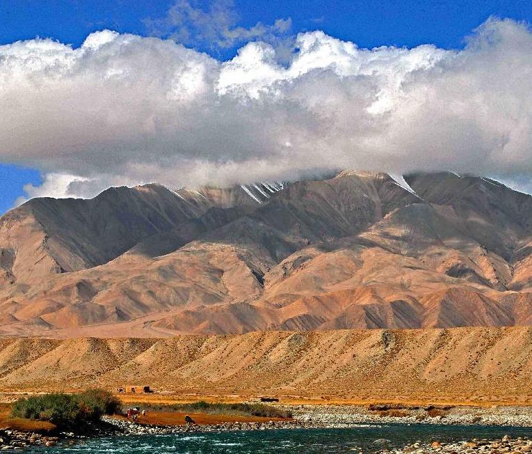 Karakul Lake is situated at an altitude of 3,600 m. It is the highest lake of the Pamir plateau, near the junction of the Pamir, Tien Shan and Kunlun Mountain ranges. Surrounded by mountains which remain snow-covered throughout the year, the three highest peaks visible from the lake are the Muztag Ata (7 546m), Kongur Tagh (7 649m) and Kongur Tiube (7 530 m).