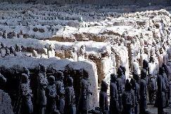 It is about 40 kilometers away from the downtown area of Xian, at east side outskirts of the city, discovered accidentally in 1974, by local farmers who dug the well. This incredible army formation contains more than 8000 soldiers, archers, horses and chariots, guarding emperor Qin's tomb in full battle formation since 210 BC。Each figure is unique ,even today the excavation still continue in 3 pits which are protected by huge arch-shape hangar.